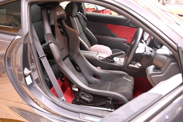 神奈川県からご来店です。 多数ある体感シートを試座して、着座位置が下がりお客様の身体に合ったRSSをご選択いただきました。 GR86、GRヤリスは純正で赤ステッチを使用してあるので、インテリアを統一させるならASMモデルが非常におすすめです。