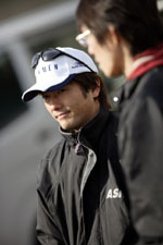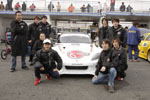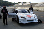 | そしてタイムアタック開始です。1コーナー、1ヘア、ダンロップ、2ヘア・・・TODAエンジンの咆哮が筑波サーキット全体に響き渡り、見学者みんなが固唾をのみます。最終コーナーに進入、コーナーリングスピードが速い!!「ご、ご、57秒398〜?!まだタイムアップするのか?ASMは!なんなんだ、この車は!!!」会場は一瞬静寂に包まれ、その後どよめきが広がりました。ところが車から降りた加藤選手に喜びの表情はありません。1回目のアタックで57秒4を記録した周回、何と他車に引っかかっていたと言うのです。もしかしたら57秒2かそれ以上のラップタイムが期待できた幻の周回でした。2ヒート目、タイムを上げようとスタンバイしていたが路面状況は刻々と悪化し、タイムアタックをするも57秒9にしか届かず、2006年の筑波タイムアタックに幕を閉じました。チームの力だけでなく会場の声援が筑波スペシャルのレコード樹立に繋がった気がします。 |