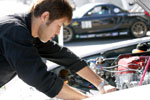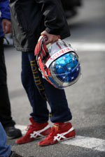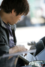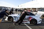 | 12月7日、REVSPEED筑波スーパーバトル2006本番です。勝負をかけるのは1本目、過去3年の実績を見ても2本目にタイムを期待できる路面状況はありません。朝の練習走行はUSEDタイヤで既に58秒台を連発、昨日載せ替えたエンジンに不安は消えました。加藤選手のコメントを基に戸田レーシング矢野さんがリセッティングして10馬力あったパワー差を実際には4〜5馬力程度の差まで縮めます。ここで昨日1周を計測できなかったGSコンパウンドタイヤで57秒に入れて、手ごたえを掴みました。チームにもドライバーにも過去3年にない緊張感が漂っていましたが、それは不安ではなくスーパーラップを期待する気持ちの高ぶりから来る心地良い緊張感でした。 |