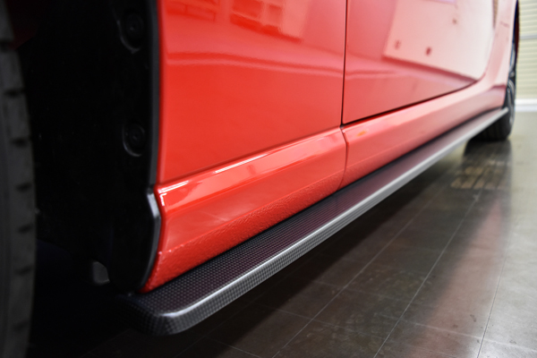 ボディ側面を流れる空気が床下に巻き込まれて空気の流れを阻害することを軽減する空力パーツ。乗降性・デザイン・空力をバランスしています。6気圧オートクレーブ成形のCFRP(ドライカーボン)製。参考重量0.92s |