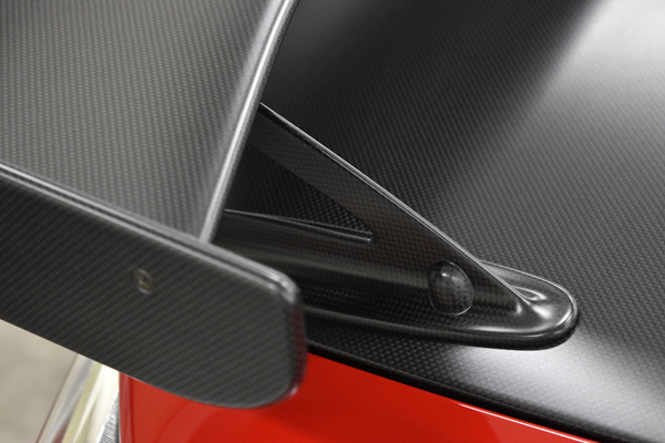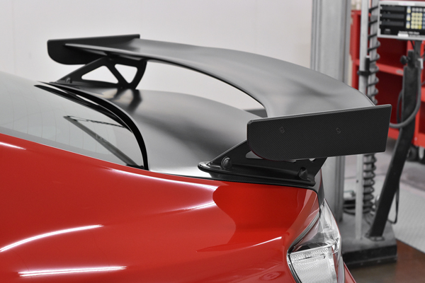ウィング本体・翼端板・ステーまで全て6気圧オートクレーブ成形で製作したCFRP(ドライカーボン)リヤウィング。参考重量2.36s