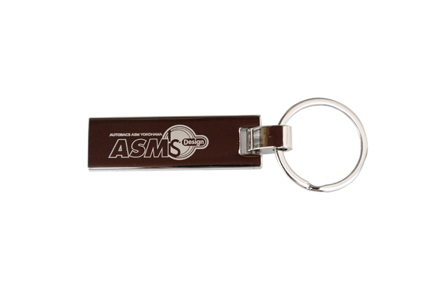 表面磨き加工した、ASMロゴをレーザー刻印したキーホルダー。