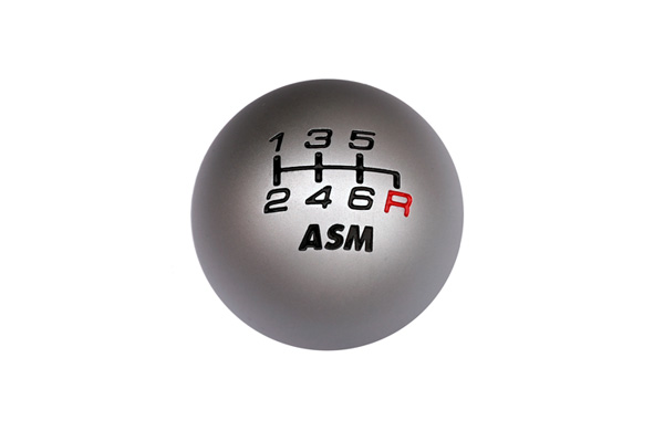 アルミ削り出し球体型シフトノブをベースにASMロゴを追加しました。「R」文字はI.S.Designロゴと同じ赤です。S2000純正シフトノブと同じネジ直径×ネジ山間ピッチで製作しています。 |