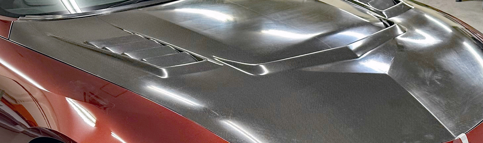 | Z33用として初のカーボンプリプレグ3気圧オートクレーブ成形のボンネット(2008年1月現在)。エキゾーストマニホールドの熱を効率よく排出するエアダクトを備え、雨水をエンジンルーム前方に流して排出する裏骨を持・・・ |