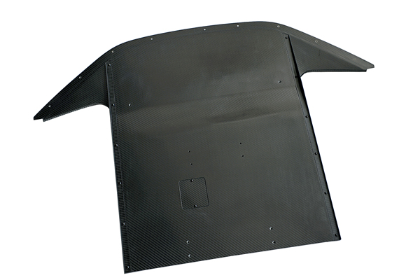 筑波スーパーバトル2004に向けて企画した空力パーツ。FRPにコアマットを積層して床の変形を防ぎます。参考重量5.8kg(取付ステー類含まず)。 |