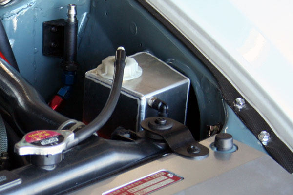 ノーマルのキャップとノーマルの取り付け金具をそのまま使用、容量もノーマルと同じのラジエタータンク。