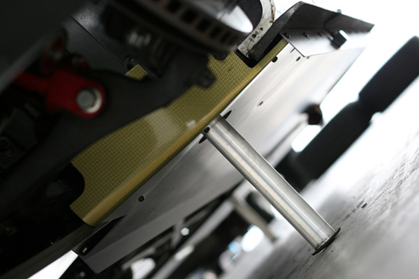 筑波スーパーバトル2007に向けて企画した空力パーツ。3Kカーボンプリプレグ・6気圧オートクレーブ成形のドライカーボン製。インナーフェンダー結合部は強度の高いケブラー製。 |
