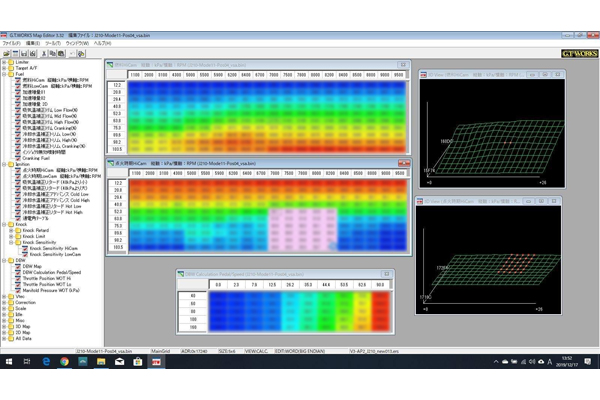 VTEC切り替え回転数、<高負荷>設定:4,200rpm/復帰:4,000rpm <低負荷>設定:5,200rpm/復帰:4,000rpm、REVリミット9,000rpm、速度リミッター変更済み。VSA完全OFF可能、DBW最適化、燃調出力空燃比、ノックセンサー感度純正ECUと共通。 |