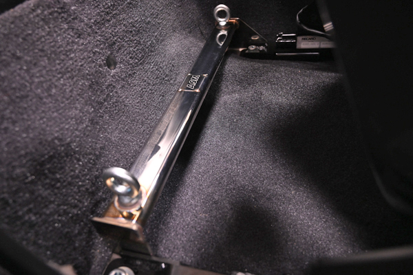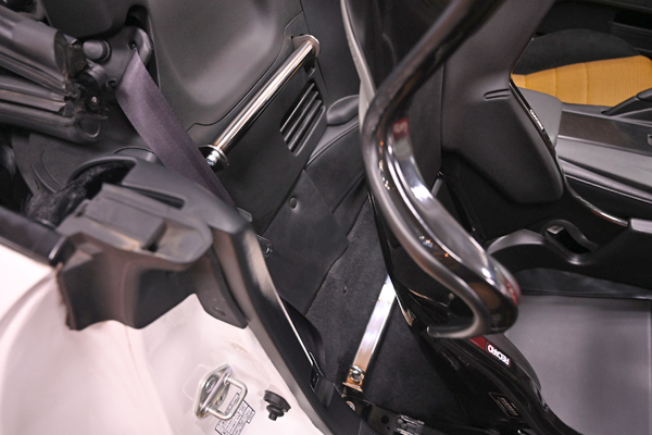 シートを固定するベースフレーム固定ボルトの後方側を連結することでフロアパネルの剛性を向上します。簡易的に4点式シートベルトを装着することも可能です。 |