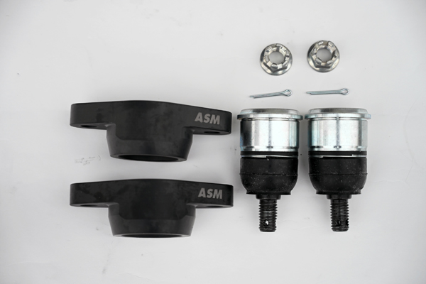 高負荷がかかるボールジョイント部は耐久性と信頼性を重視して、某純正部品を製造する製造工場でASMが指定するサイズのボールジョイントを新規製作しています。純正ブーツを使用できる寸法にすることでグリス容量の確保と長期間使用時のメンテナンス性を向上しました。キャンバージョイント部は安心・安全・信頼性を優先して、炭素鋼(S45C)製を採用しています。ジョイント固定ボルトも純正を使用できる寸法にしました。 |