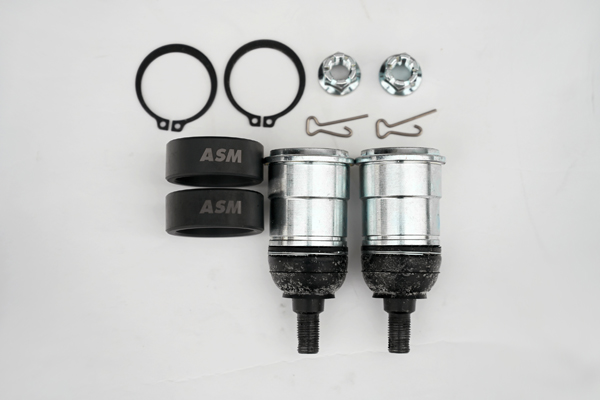 高負荷がかかるボールジョイント部は耐久性と信頼性を重視して、某純正部品を製造する製造工場でASMが指定するサイズのボールジョイントを新規製作しています。純正ブーツを使用できる寸法にすることでグリス容量の確保と長期間使用時のメンテナンス性を向上しました。
